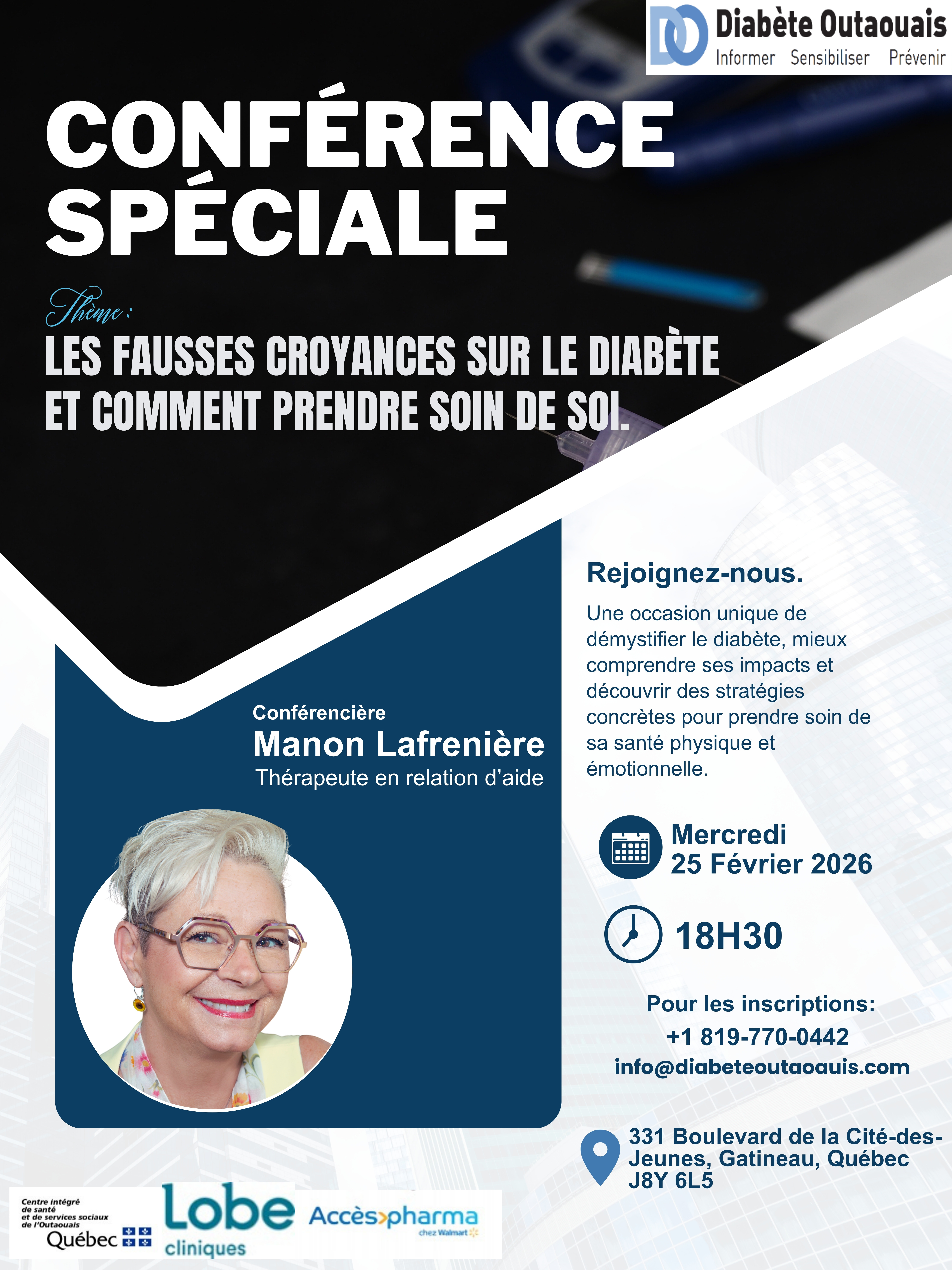 Une occasion unique de démystifier le diabète, mieux comprendre ses impacts et découvrir des stratégies concrètes pour prendre soin de sa santé physique et émotionnelle.