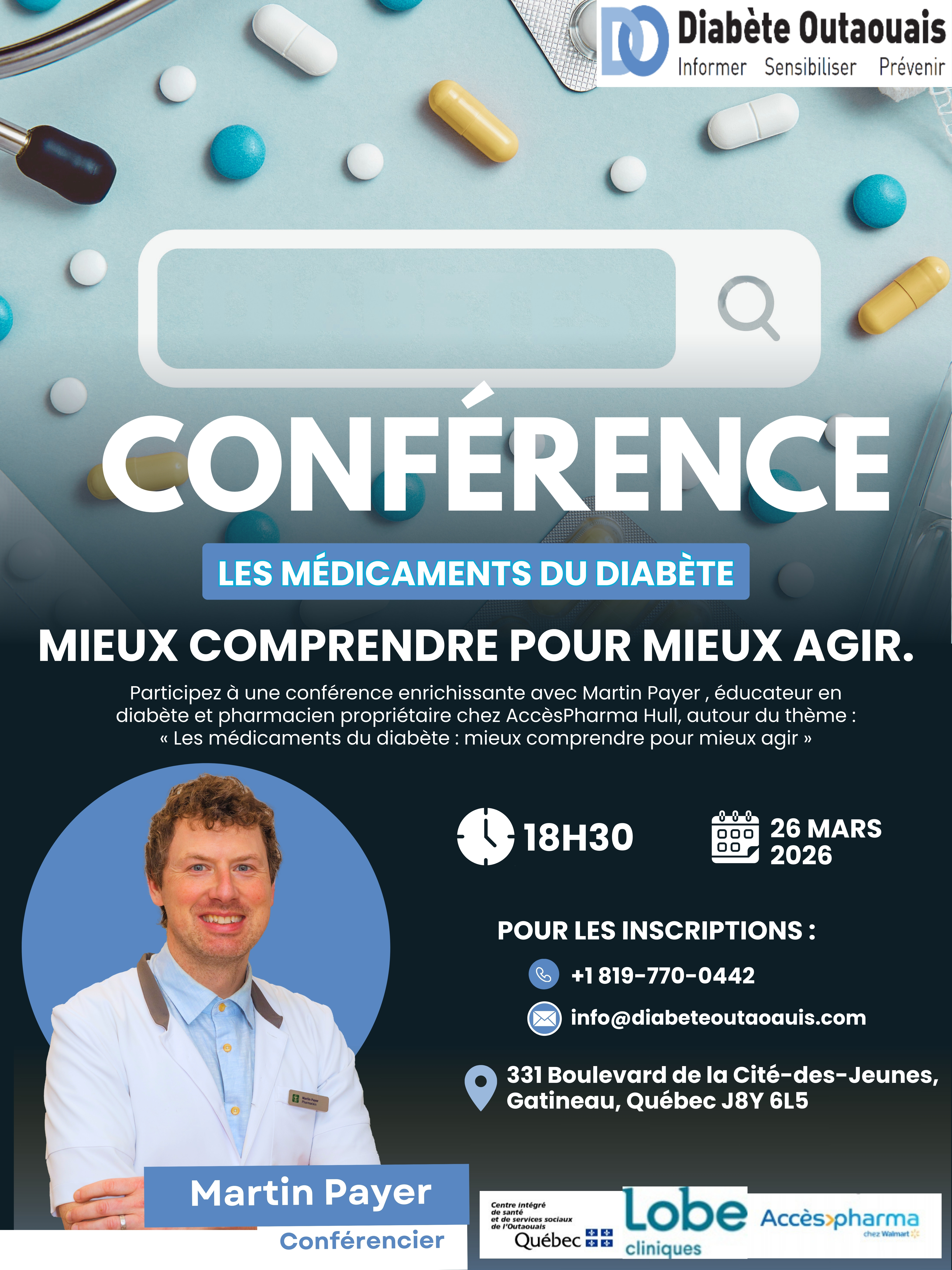 Participez à une conférence enrichissante avec Martin Payer , éducateur en diabète et pharmacien propriétaire chez AccèsPharma Hull, autour du thème :